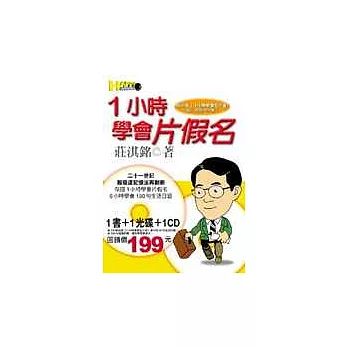 二十一世紀超倍速記憶法再創新,保證1小時學會片假名,6小時學會150句生活日語!1書+1光碟+1CD CD版加錄《一小時學會五十音》書中的50句生活日語,共200句超值回饋,讓你學習更多元。日語中的片假名,是出了名的難學難記,許多人學了一兩年日語,碰上片假名照樣沒法度。學習大師莊淇銘教授繼暢銷書《一小時學會五十音》之後,再次用創意的圖像聯想,讓你輕輕鬆鬆牢記片假名,外加150句生活日語,讓你到日本自助旅行也能暢快遊歷,通行無阻。為了回饋熱情讀者,本書除了附上電腦影音光碟外,並加贈一片CD,讓你隨時隨地可在耳邊重複聆聽,掌握時間,效率加倍,輕鬆突破日語障礙。